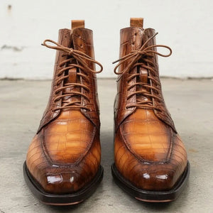 Our boots collection marries timeless elegance with rugged refinement — each pair is handcrafted by master artisans who devote countless hours to precision stitching, hand-lasting, and careful finishing. We source only the finest full-grain leathers and rich suedes, treating every surface to subtle burnishing, gentle embossing, or patina effects that mature beautifully with wear.