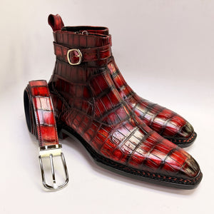 Style: C Collection Croco Embossed Leather Belt Burgundy