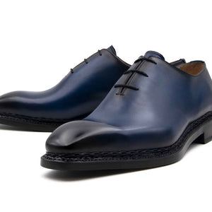 "Norman" Burnished Calfskin Lace-Up Split-Toe Oxford Navy