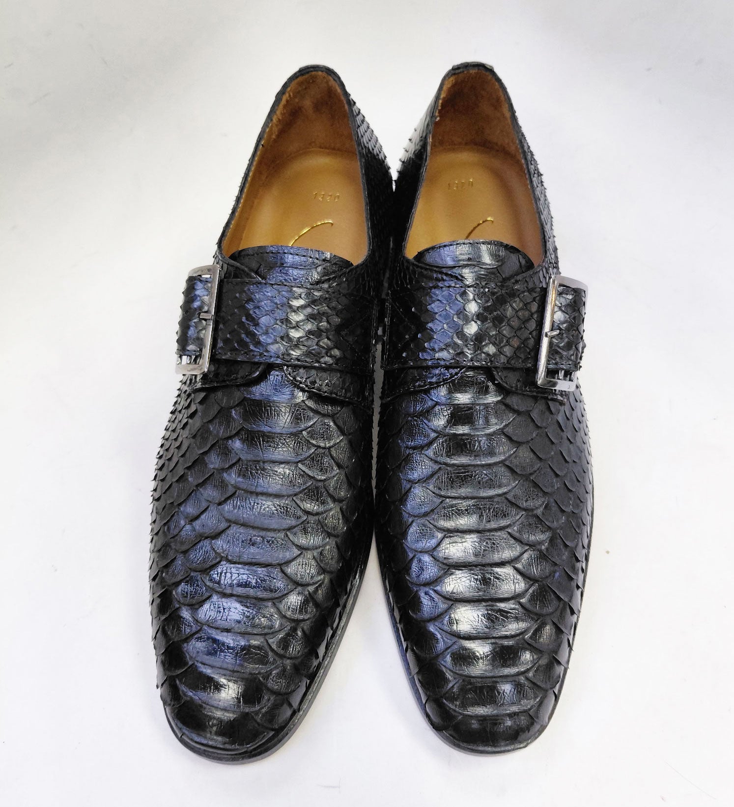 Stylish Monkstrap from our C Collection in Python Printed Calfskin features a fashion Silvertone Buckle, tone on tone Grosgrain Trim, a clean welt and a full Leather Sole!
