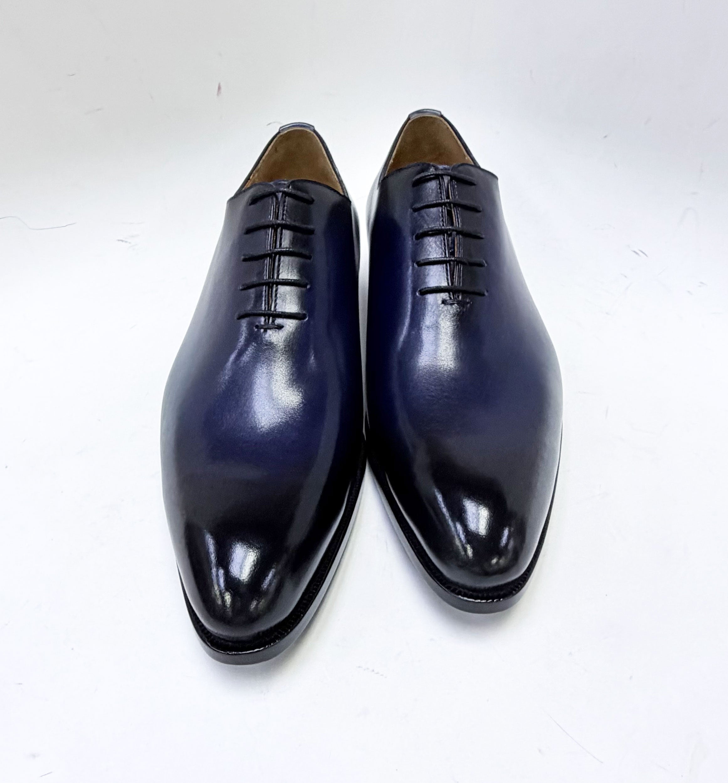 Spectacular & Completely Handmade, this Wholecut Hand Burnished Calfskin Oxford from the Ugo Vasare collection features soft Calfskin lining, cushioned insole, wheeled welt and a full Leather sole! Matching Belt Available. Don't see your size? Call us to place a Special Order in your size.