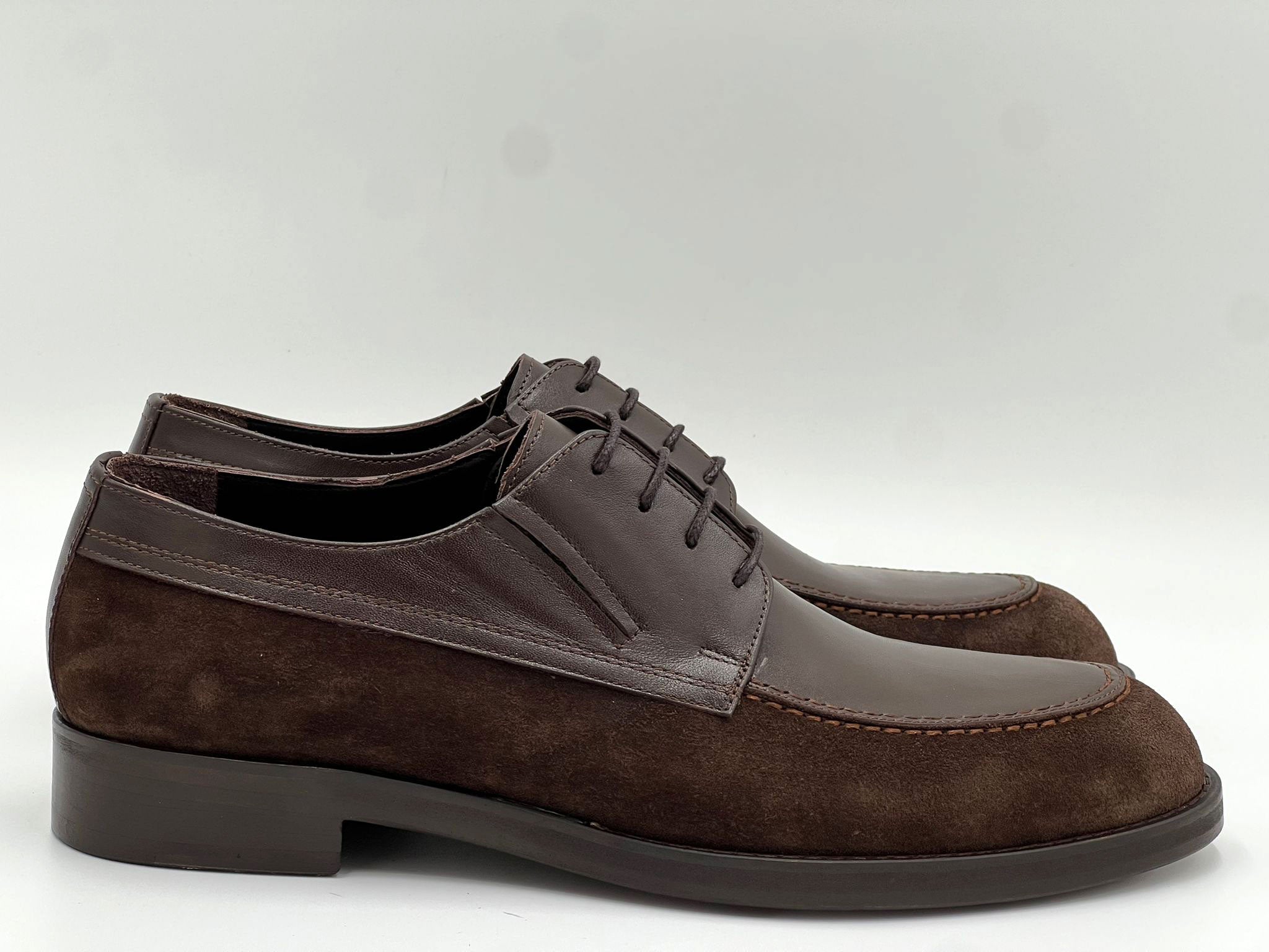C Collection Calfskin Leather & Suede Lace Up Oxford Brown