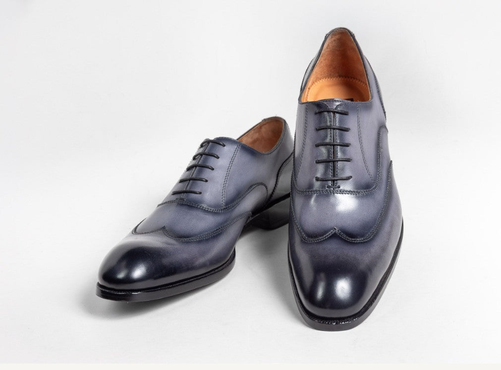 Cordovan shoes need special care. Do not use Neutral cream or paste polish, it tends to leave a white film on Cordovan leather. Do use Cordovan color paste wax polish. Also beware that the shell Cordovan creases are usually lighter, not darker, in color.Cordovan leather is vegetable tanned instead of the modern method of “Chrome” tanning. Since cordovan leather already contains a large amount of oil/wax, the polishing requirements are different from Calfskin. Use a damp soft cloth for cleaning shell cordovan shoes.