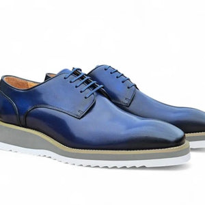 Burnished Calfskin Lace-Up Spectator Oxford Blue/White
