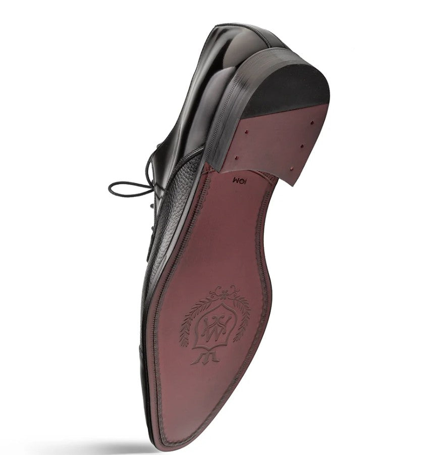 Before taking your new shoes out on their first walk, be sure to apply a coat of water repellent to the leather. After the initial application, habitually reapply it as instructed. Most experts recommend that you use a water-based repellent to seal the leather because it allows it to breathe and the moisture inside it to escape. Moisture impacts leather’s elasticity, so keeping moisture balanced is a must; too much moisture causes the leather to stretch, while too little moisture causes the leather to shrink. In both cases, the leather becomes ugly and loses its original fit. For as little as $8, a can of spray-on water repellent can dramatically increase the comfort and the lifespan of your leather shoes.