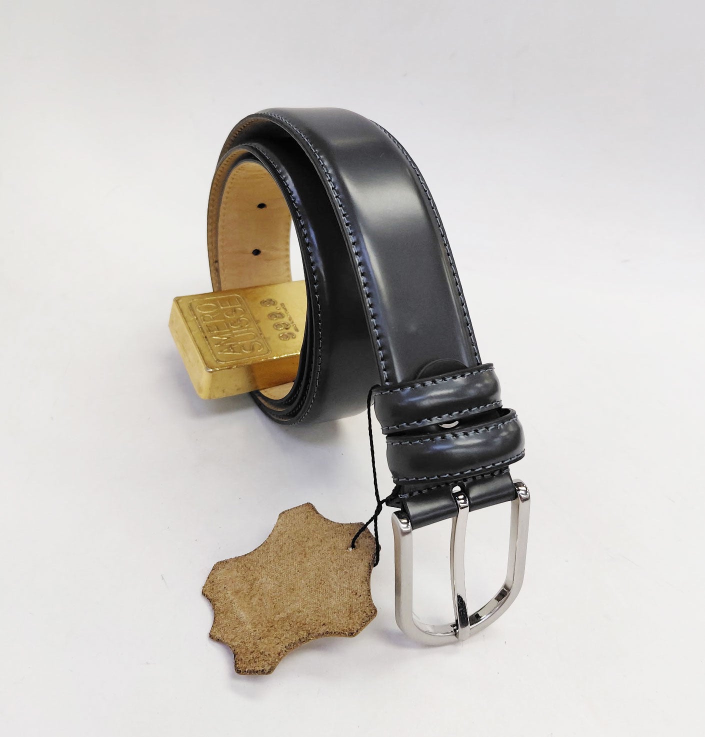 Style: Grey Leather Belt-Silver Buckle