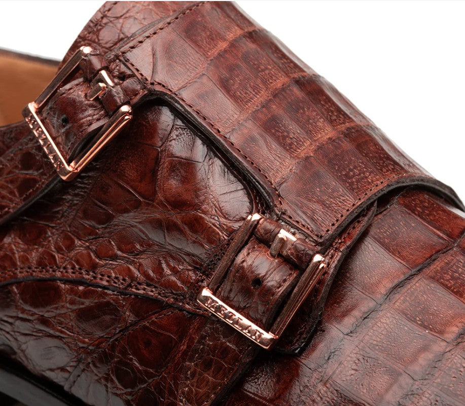 Exotic Doubled Spread Monkstrap Design from the Mezlan collection in Genuine Crocodile features a Plain toe, Braided Welt, soft Italian Calfskin lining, their injected memory foam comfort cushion insole, and Durable Full Leather Sole with Laser Design Island InlayHandmade in Spain.