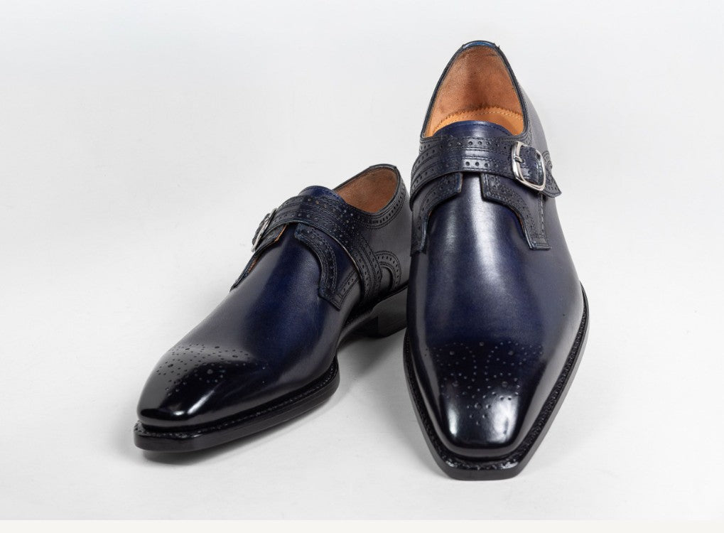 High Fashion slip-on Monkstrap Shoe from Ugo Vasare with metal hardware crossing for a stylish look.