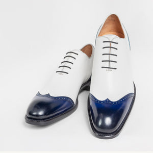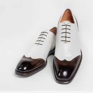 "Stephen" Burnished Calfskin Lace-Up Spectator Oxford Black