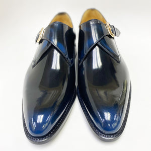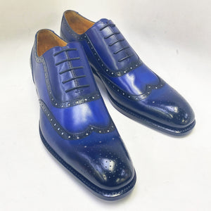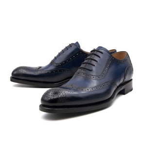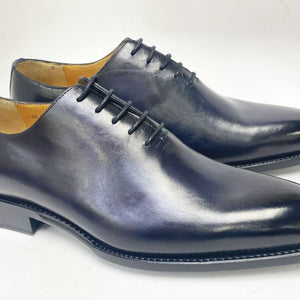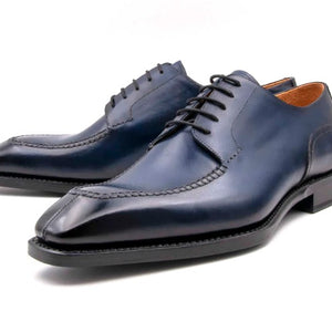"Norman" Burnished Calfskin Lace-Up Split-Toe Oxford Navy