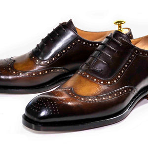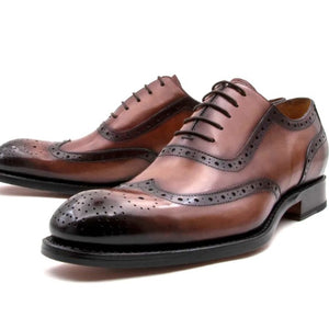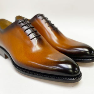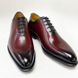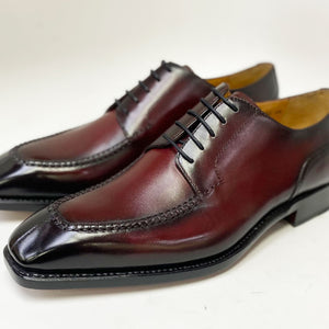"Norman" Burnished Calfskin Lace-Up Split-Toe Oxford Burgundy